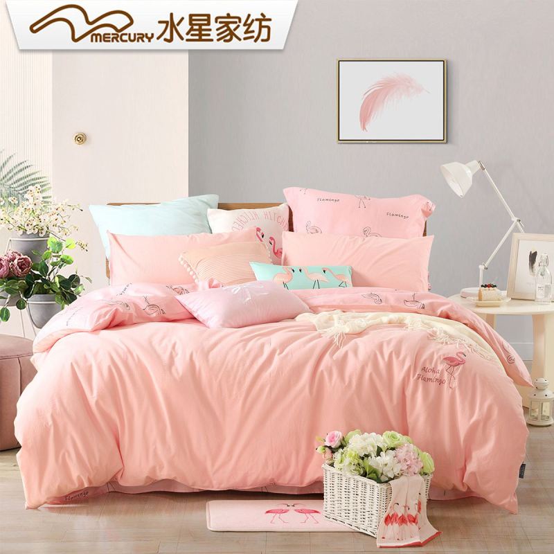 水星(MERCURY)家纺 全棉绗缝水洗棉四件套床品套件床上用品被套其他 1.8m床米简蕾拉A类多花型