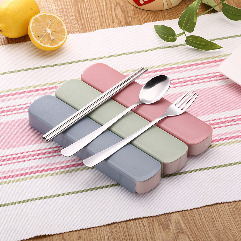 爱自由不锈钢勺子筷子叉子套装学生便携式旅行盒餐具三件套筷勺叉组合